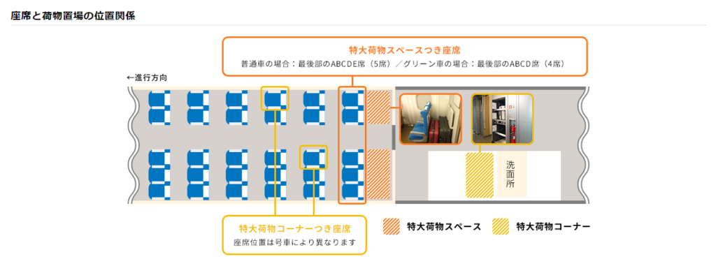 ※特大荷物コーナーつき座席と間違えないようにご注意ください。